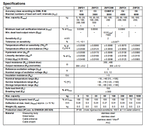 Z6 稱重傳感器有多種不同的型號(hào) (Z6FD1, Z6FC3, Z6FC3MI, Z6FC4, Z6FC6) 并有不同的精度等級(jí).