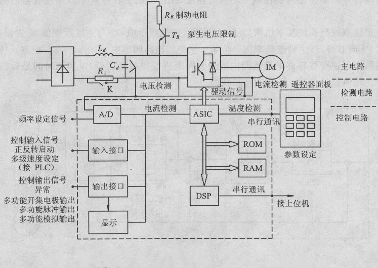 螺桿擠出機為恒轉(zhuǎn)矩負載,因此選配變頻器為PI500/PI500A系列,變頻器的輸入電壓為380V±15%,額定輸出功率為