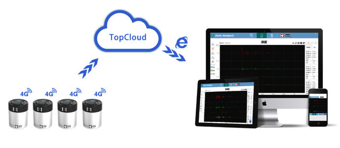 捷杰傳感智能無線傳感器在線檢測系統,通過無線振動監測傳感器和無限網關實現數據4G上云或到中央服務器。通過