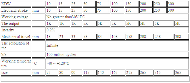 用。KDW系列位移傳感器(電子尺)的測量長度為10-300mm,利用導電塑料軌與稀土金屬多指接觸片,提供了穩定的訊號,低噪