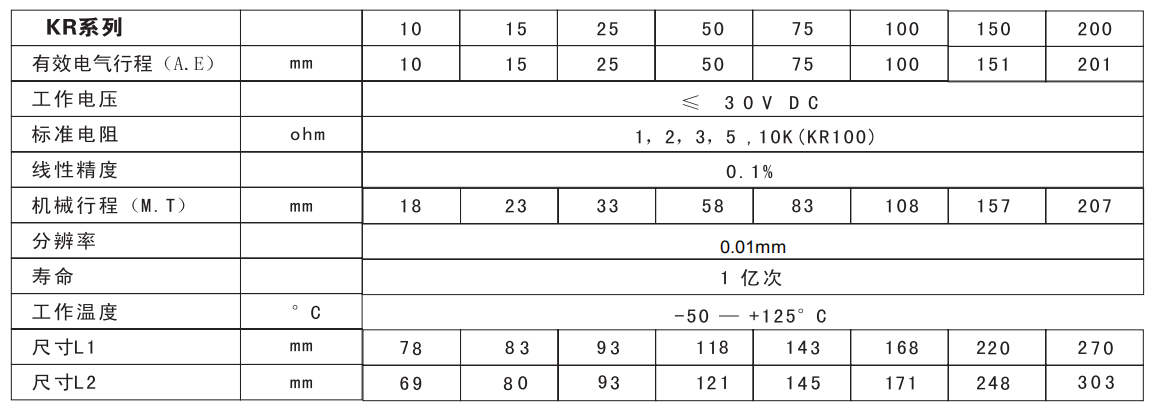 器(電子尺)的測量長度為50-1000mm,利用導電塑料軌與稀土金屬多指接觸片,提供了穩定的訊號,低噪音及高壽命的運