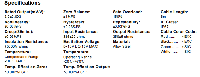 SSM-50kN/SSM-100kN稱重傳感器技術(shù)參數(shù)