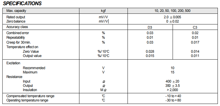 韓國CAS HBS-500L稱重傳感器技術參數: