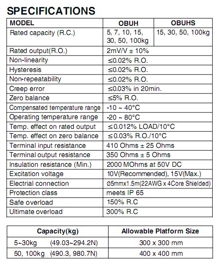 Bongshin OBUH-30kg稱重傳感器主要特性: