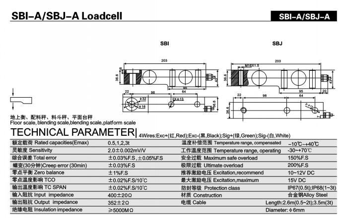 美國SUNCELLS SBJ-3T稱重傳感器中文參數: