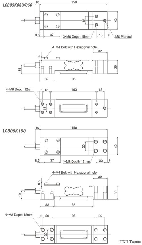 日本A&D LCB05稱重傳感器規格圖(單位=mm)