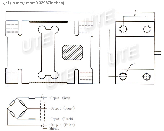 臺灣UTE UMA稱重傳感器尺寸圖: