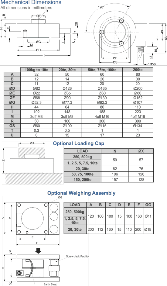 There are mounting plate, load cap and complete weighing assembly accessories available for ranges up to 30te, and load cap versions.