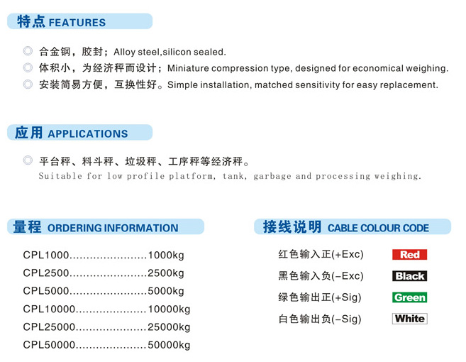 CPL傳感器,志美CHIMEI CPL稱重傳感器規格:
