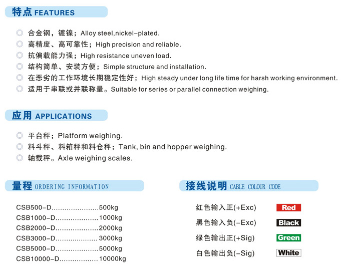 CSB-D傳感器,志美CHIMEI CSB-D稱重傳感器規格: