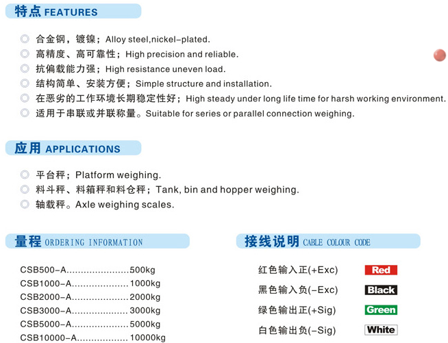 CSB-A傳感器,志美CHIMEI CSB-A稱重傳感器規(guī)格:
