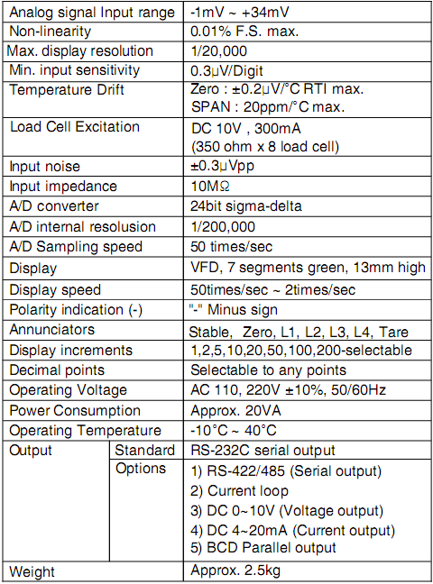 韓國Bongshin BS-7300稱重儀表技術指標