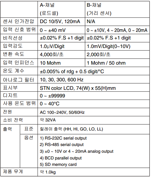 韓國Bongshin BS-G1000稱重儀表技術指標