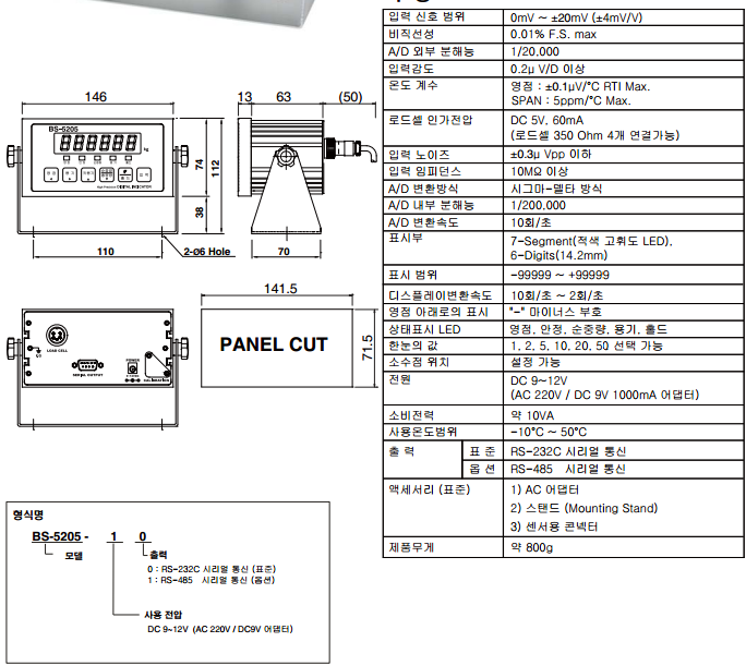 韓國Bongshin BS-5205稱重儀表技術指標