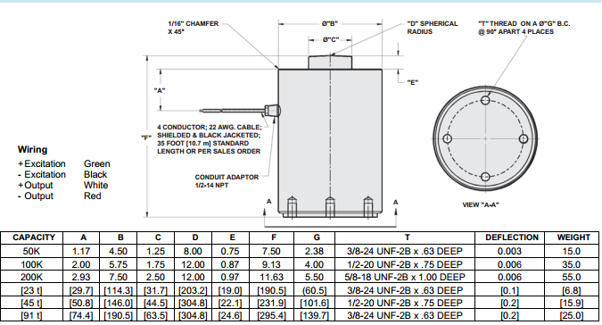 Compression Load Cell Multi-Column Stainless Steel Sensortronics Model 65088-0114 has rated capacities of 50,000 to 200,000 lbs., 23 to 91 metric tons, stainless steel, welded seal construction, multi-column monolithic element design and three times side loading tolerance relative to similar competitive products.