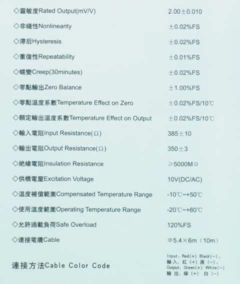 美國AC GX-2-500kg稱重傳感器技術(shù)參數(shù):