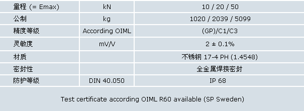 FLINTEC富林泰克UB1 S型稱重傳感器技術參數