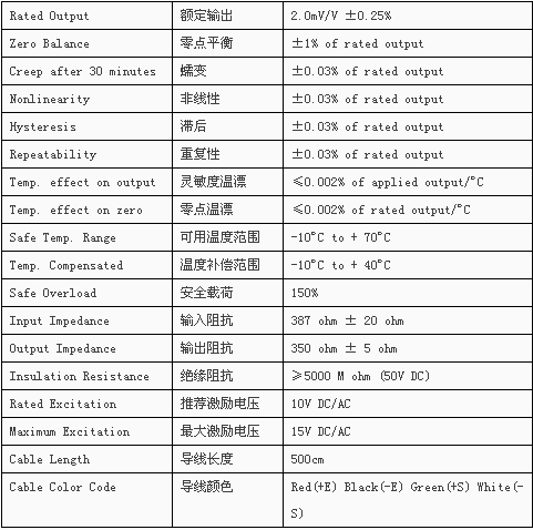 DBSL-SJ(0.5~2t)輪輻式稱重傳感器技術(shù)參數(shù):
