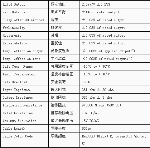 Transcell DBSL-TJ(0.5t-2t)輪輻式稱傳感器技術參數: