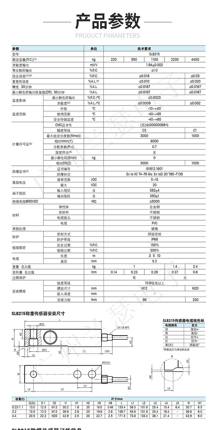 產品型號:SLB215稱重傳感器
