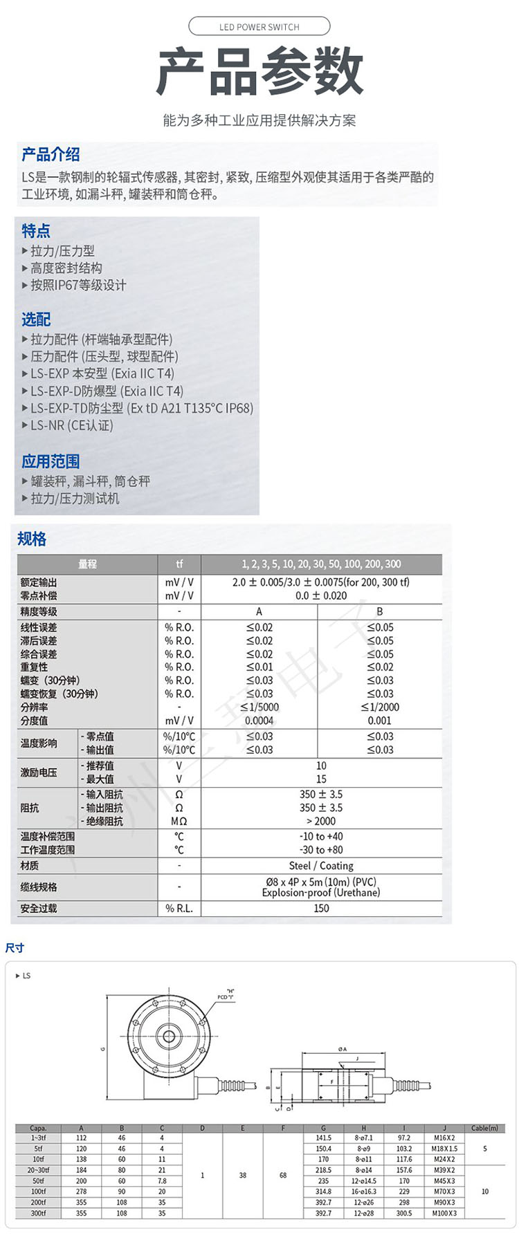 LS/LSU 壓式負(fù)荷傳感器, 1tf-100tf