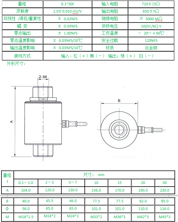 美國(guó)AC ET-2稱重傳感器技術(shù)指標(biāo):