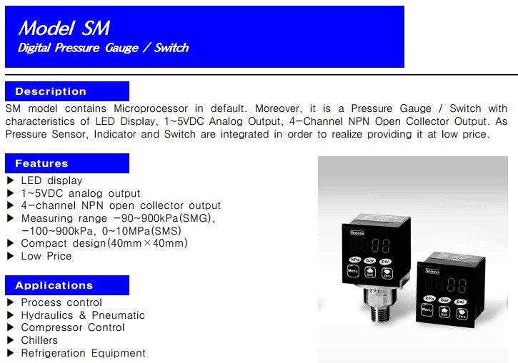Since Sensor System Technology(Sensys) Co.,Ltd started its business 1998, it has been growing steadily special company for Pressure Sensor and Control Components. 韓國(guó)Sensys成立于1998年,發(fā)展迅速,從單一的生產(chǎn)壓力傳感器和控制備件,到如今的壓力傳感器,液面?zhèn)鞲衅鳎瑴囟葌鞲衅鳎瑪?shù)字儀表。 Sensys has renown for a leading company of Korea in the field, be faithful in the mission to provide superior Pressure Sensor, Level Sensor, Temperature Sensor Digital indicator to various industries. We do our best to make our customers happy, will not stop every effort to research and development.