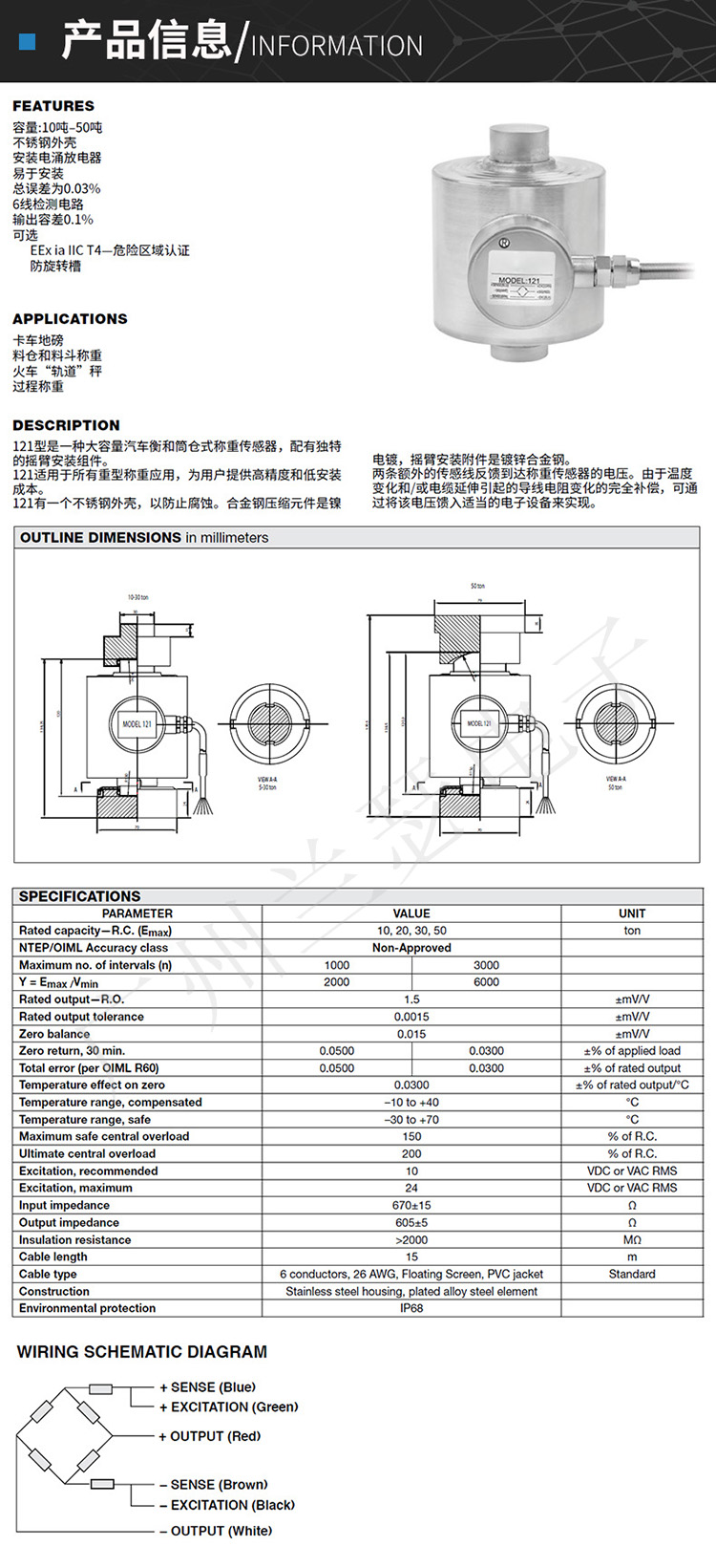 美國Tedea 121稱重傳感器產(chǎn)品參數(shù):
