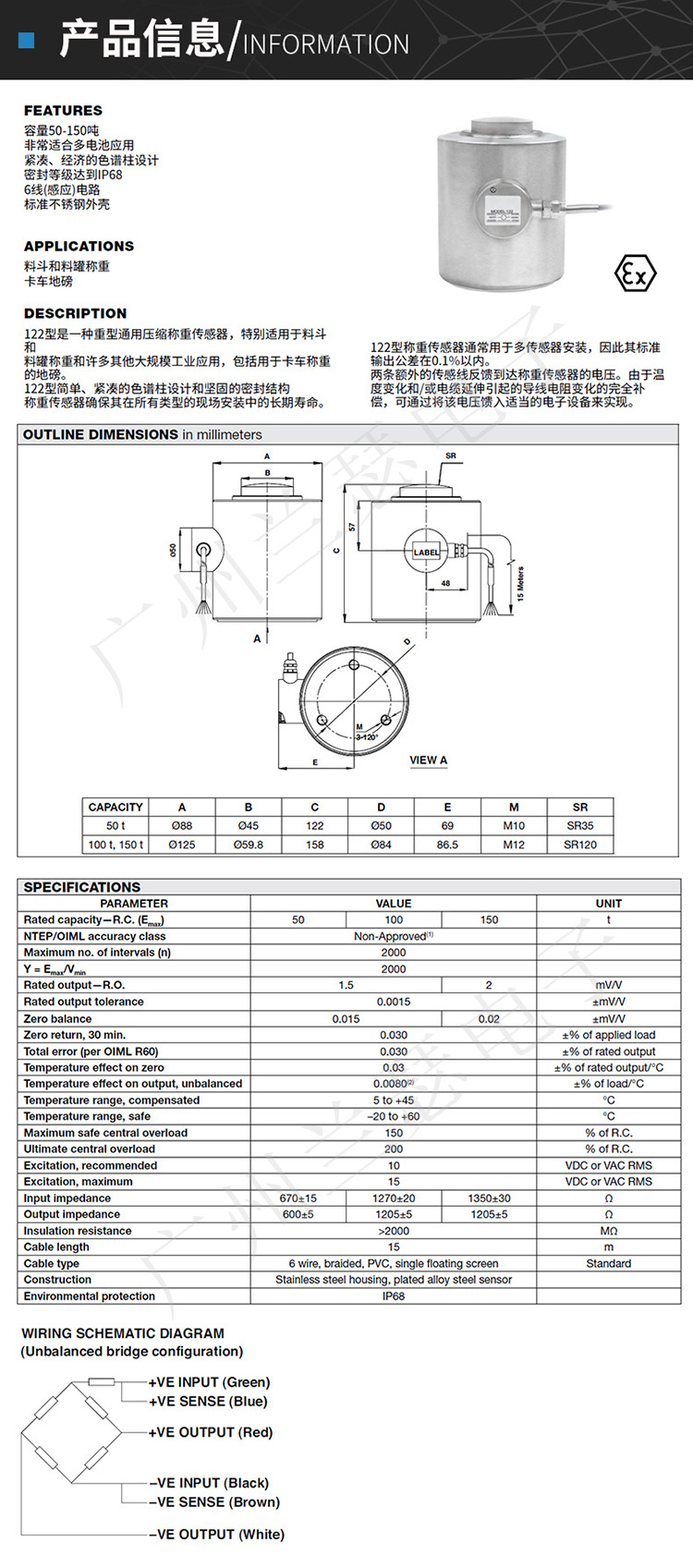 美國Tedea 122系列稱重傳感器完整型號推薦: