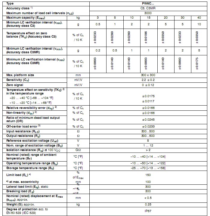 PW6C額定量程: 3 kg, 5 kg, 10 kg, 15 kg, 20 kg, 30 kg, 40 kg