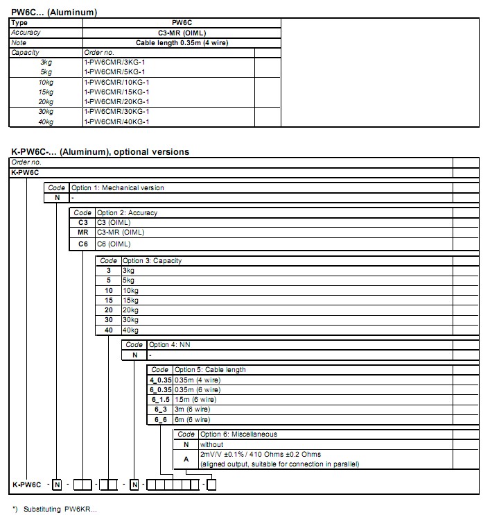 德國HBM PW6CC3傳感器系列所有型號:
