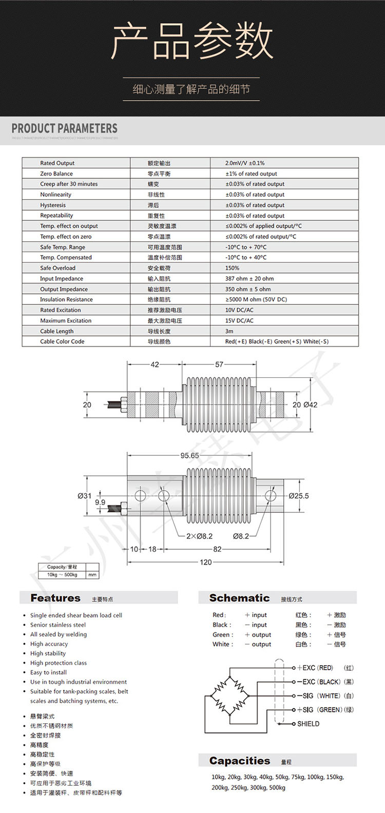 量程可選:10,20,30,40,50,75,100,150,200,300,500kg