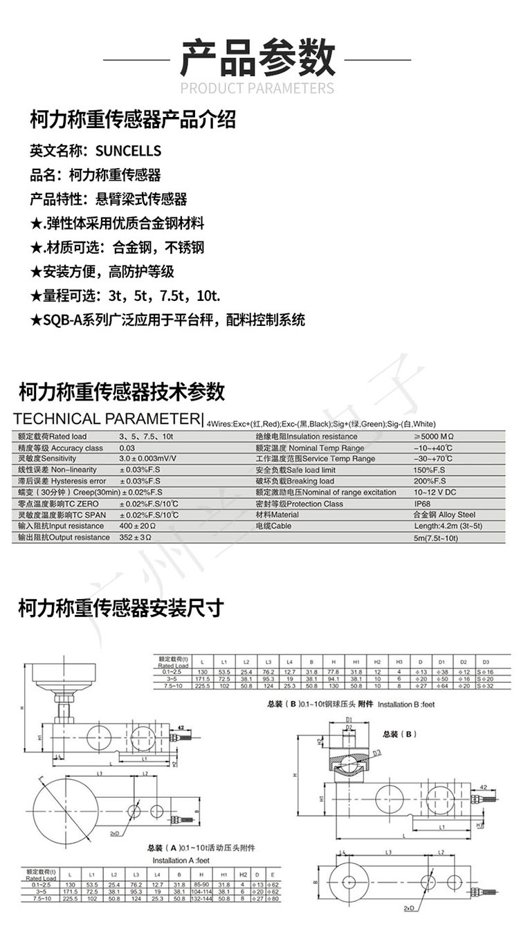 寧波柯力SQB系列稱重傳感器完整型號(hào)推薦: