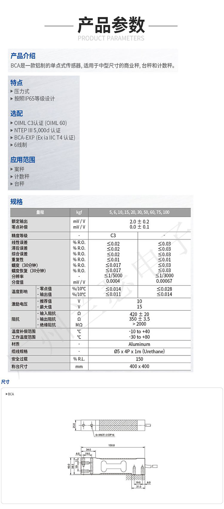 韓國CAS BCA-50L稱重傳感器所有型號: