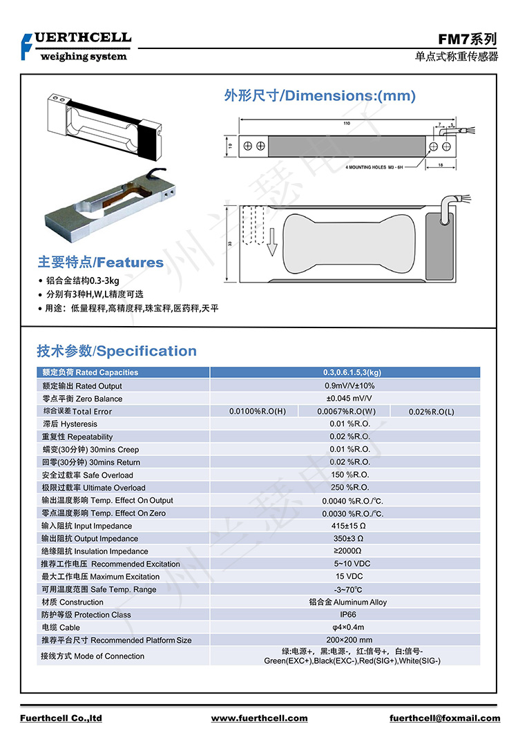 美國FUERTHCELL FM7-0.3KG稱重傳感器產品參數: