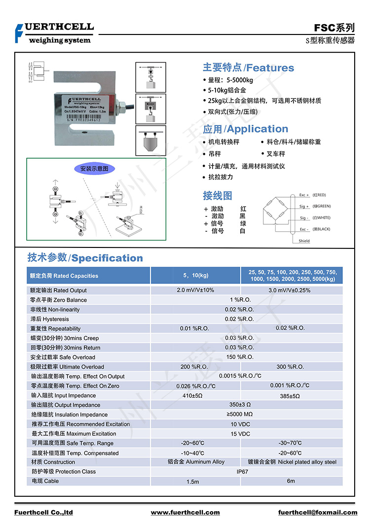 美國FUERTHCELL FSC-50KG稱重傳感器產品參數: