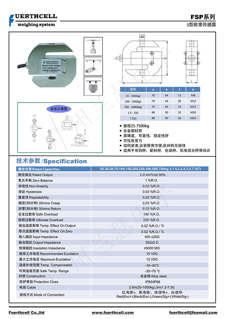 量程范圍:20,30,50,75,100,150,200,250,300,500,700kg,1,1.5,2,2.5,3,5,7.5(T)