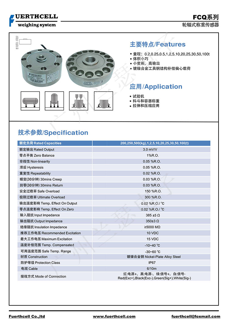 美國FUERTHCELL FCQ-1T稱重傳感器產(chǎn)品參數(shù):