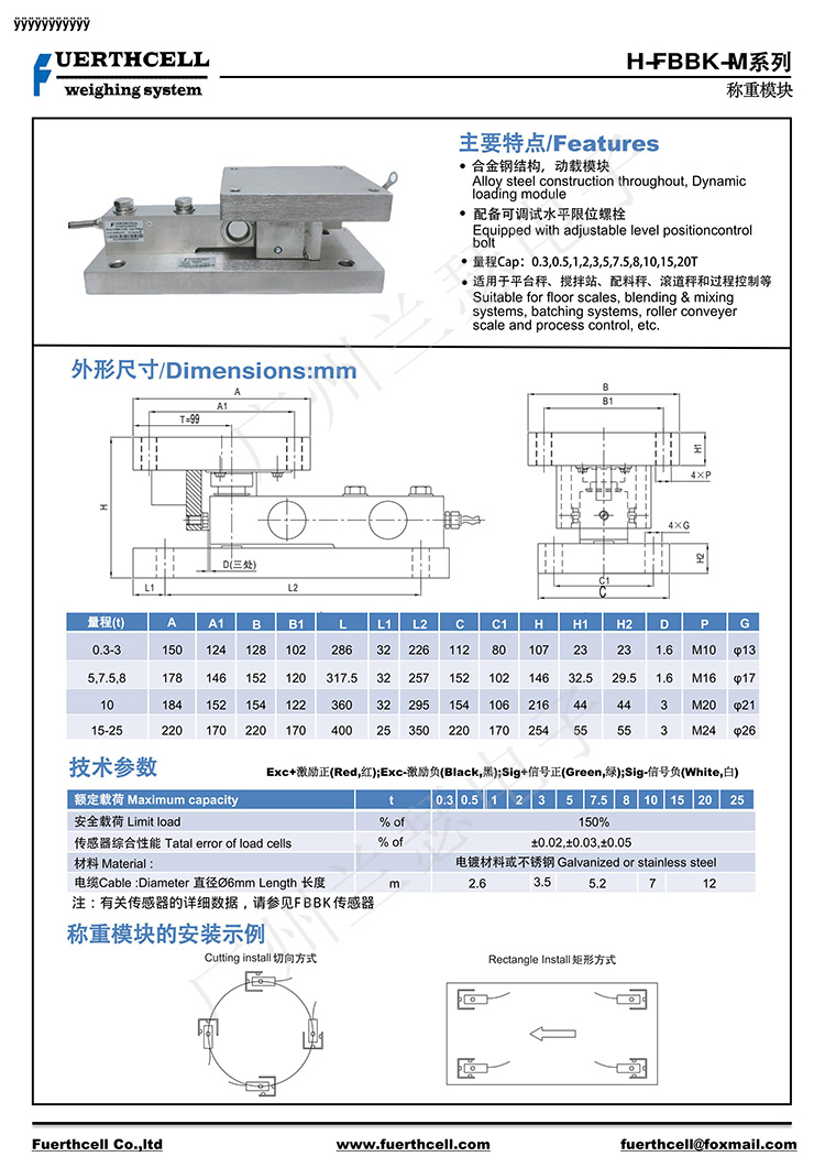 美國FUERTHCELL FBBK-750KG稱重模塊產(chǎn)品參數(shù):