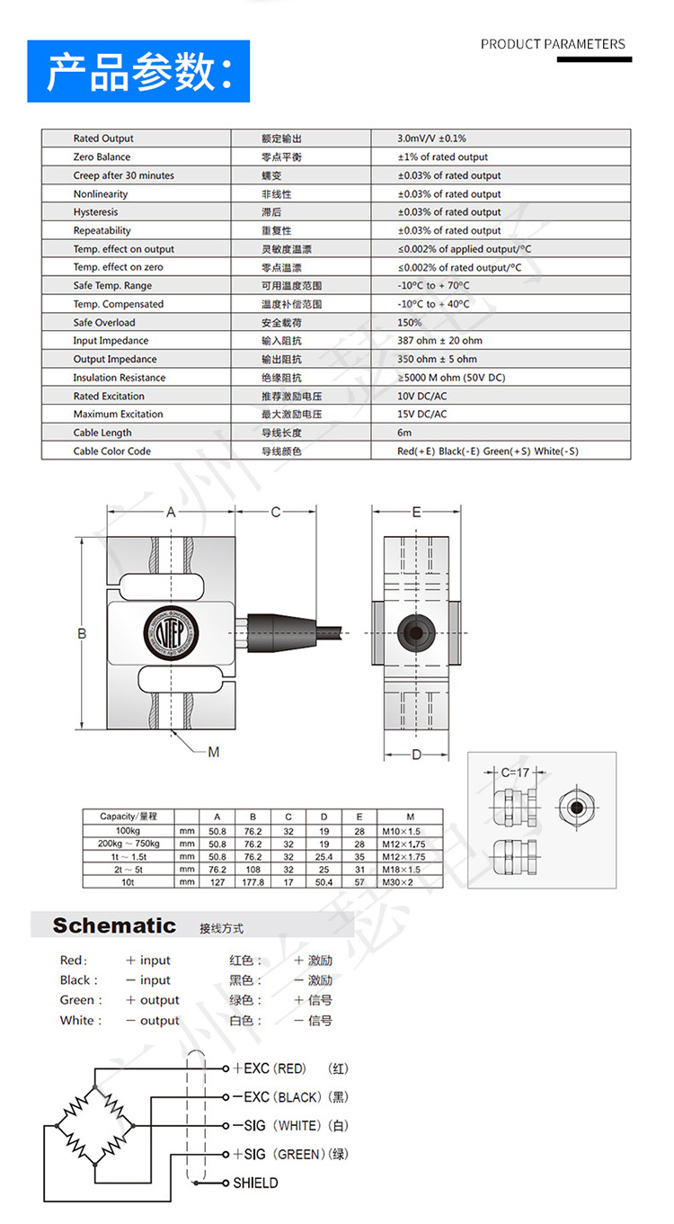 美國(guó)傳力BSS-100KG稱重傳感器技術(shù)參數(shù):