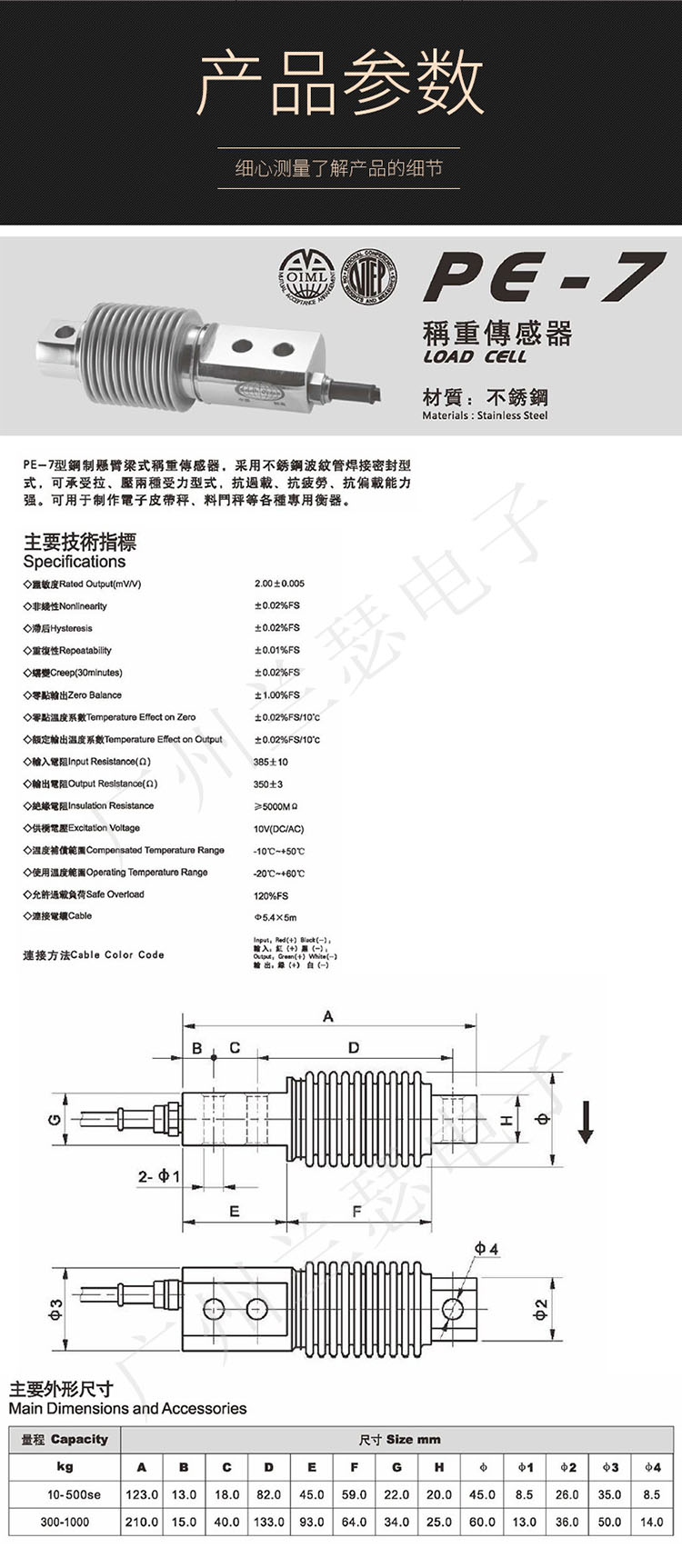 美國AC PE-7稱重傳感器技術(shù)參數(shù):