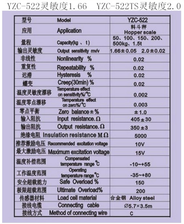 廣測GUANGCE YZC-522稱重傳感器技術參數