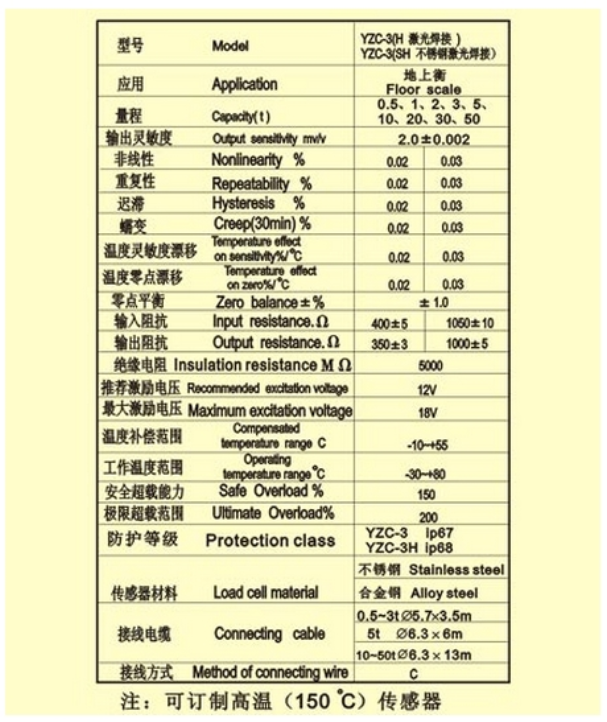 廣測GUANGCE YZC-3稱重傳感器技術參數