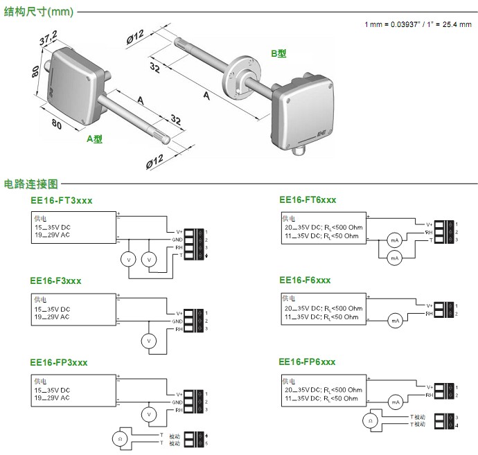 奧地利E+E EE16溫濕度變送器參數(shù):