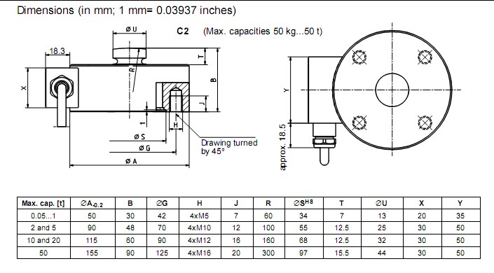 不銹鋼 C2力傳感器的額定量程: 50 kg 到 50 t