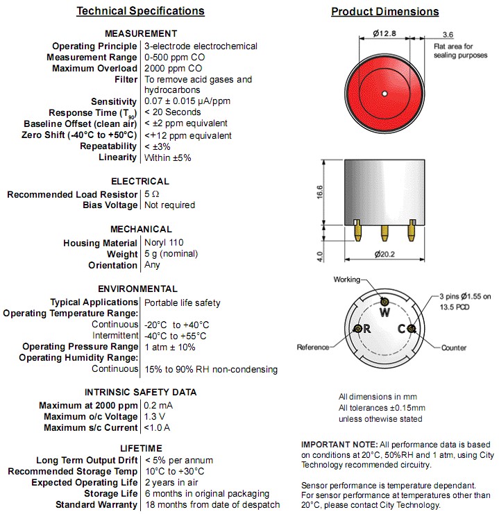 CiTiceL電化學氣體傳感器是密封元件,在正常使用下沒有化學危險性。